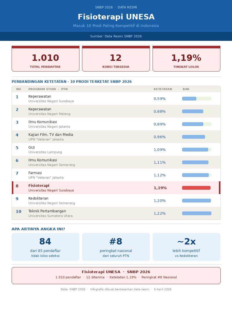 Program Studi S1 Fisioterapi Universitas Negeri Surabaya (UNESA) mencatatkan pencapaian luar biasa pada Seleksi N